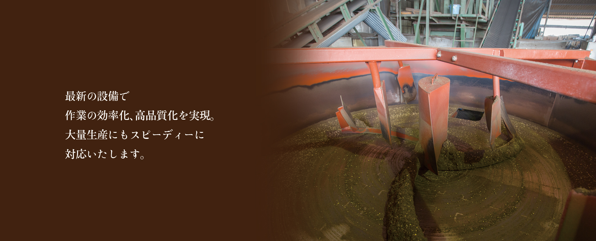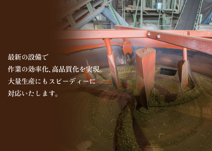堆肥に約80℃~90℃の蒸気を30分間当て、加熱殺菌しているので病原菌や害虫、雑草の種子等のが混入している心配がありません。